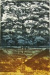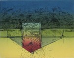 These etchings, as is much of my work in other media from the late 70’s, is most activity engaged looking for icons that express and relate elements of the landscape. With the visual is an exploration and mixing of techniques and media.
