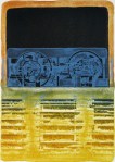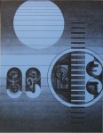 These early screens were “silk” fabric screens, hand drawn and hand printed in my studio. The images parallel my painting work. A change in media always seemed to help my creativity.