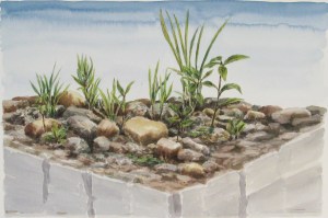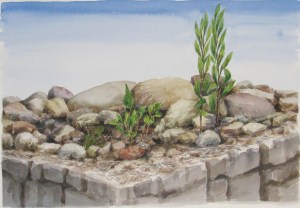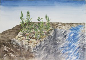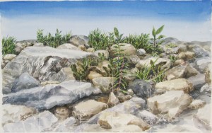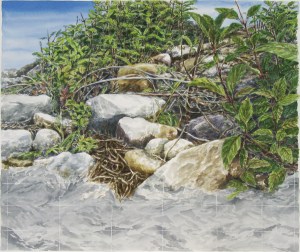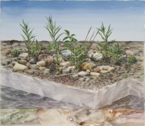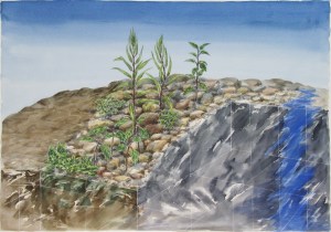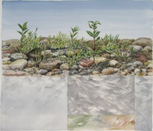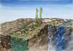 This group evolved from the previous series of shore studies. It is taking a similar detail view and placing it in a context that is more like a cutaway of nature. The kind of view that illustrates an on site installation.