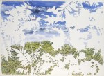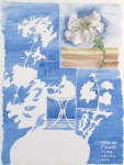 This is a series inspired on a 1985 visit to Manitoulin island where seeing that strong sunlight create strong shadows of a table and flowers on a deck, I positioned a sheet of watercolour paper and outlined the shadows. I then painted in the non-shadows areas and added a inset with an image of the flowers. This is the first image in the series. The next step was to look for interesting shadow patterns along the nearby roadsides and fields. Again a watercolour paper was placed, adjusted to find an attractive positive of the shadow forms and then paint in the plants between these “negative patterns”.